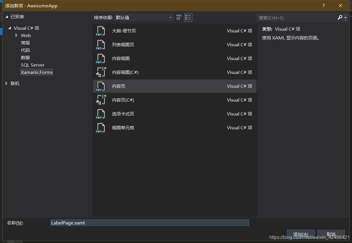 - 在 XAML 中创建 Xamarin.Forms Label。