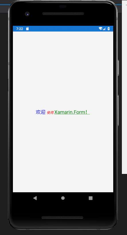 <Label Text="欢迎使用 Xamarin.Forms!"
